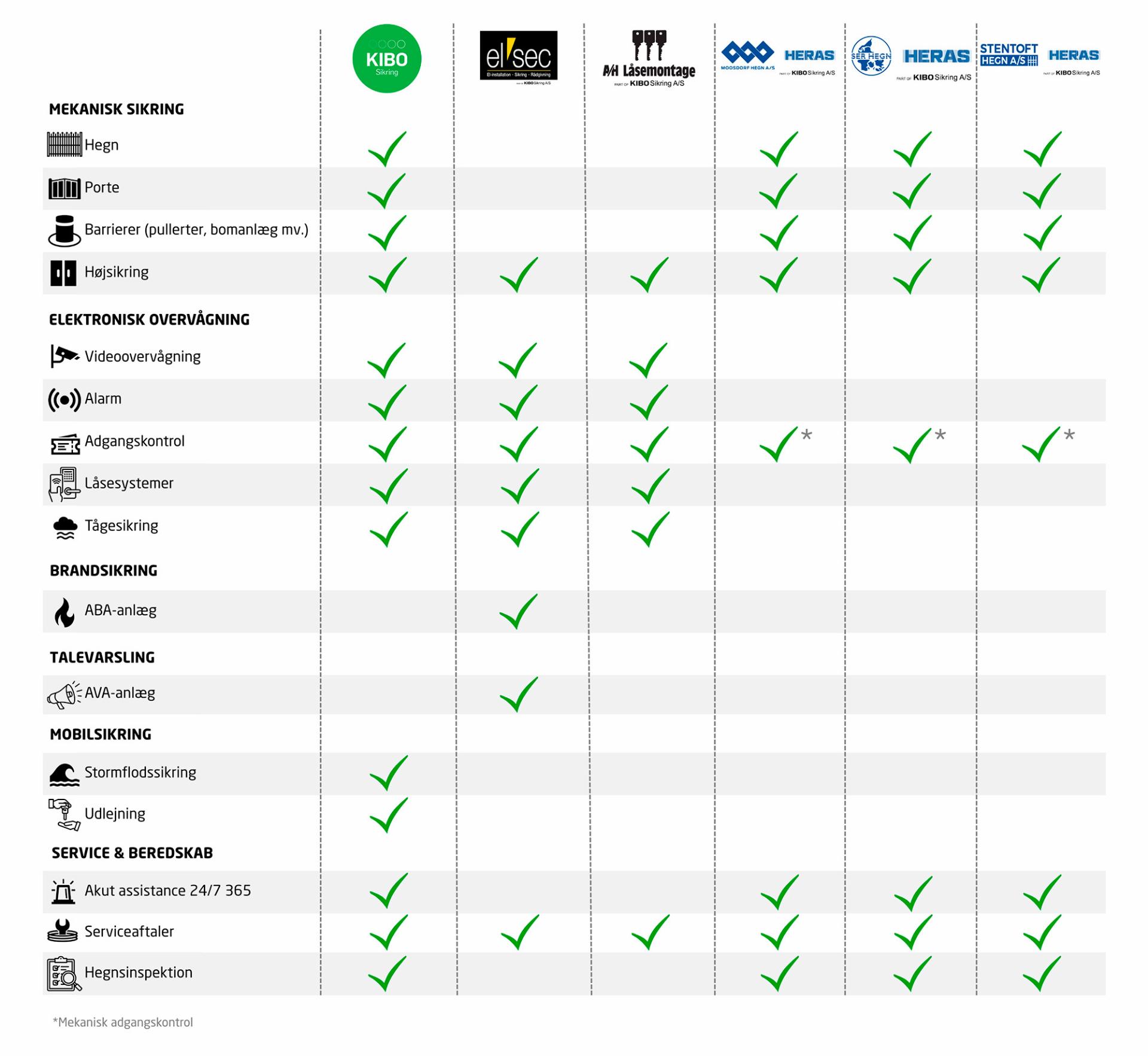 Alle virksomheder i Heras i Danmark er en del af KIBO Sikring. Vi arbejder tæt sammen med vores søsterselskaber i hele landet for at sikre alle vores kunder den bedste service og hurtig responstid. Du vil derfor kunne opleve, at du får besøg af personale iført arbejdstøj fra A/H Låsemontage, Elsec eller Heras. Alle er dog en del af KIBO Sikring, så du kan roligt tage imod dem.