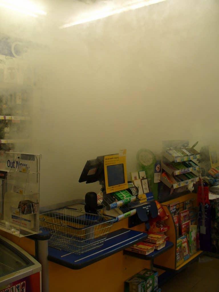 Hos Heras leverer og monterer vi effektiv tågesikring. Tågesikring (eller tågekanon) er en essentiel løsning til sikring af erhvervsejendomme, lagre, butikker og kontorer. Anlægget er hurtigt og effektivt og fylder rummet med tæt tåge på få sekunder, hvilket gør det umuligt for tyvene at orientere sig og finde de værdifulde genstande, de har udset sig.