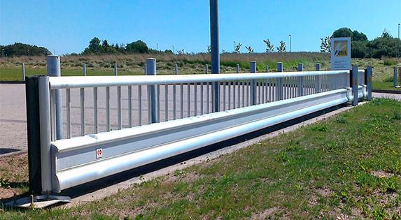 KIBO skydebom SKB 300 sikrer på en god og markant måde et område imod uønsket kørende trafik. Den automatiske skydeboms robuste struktur er en af dens væsentligste fordele.