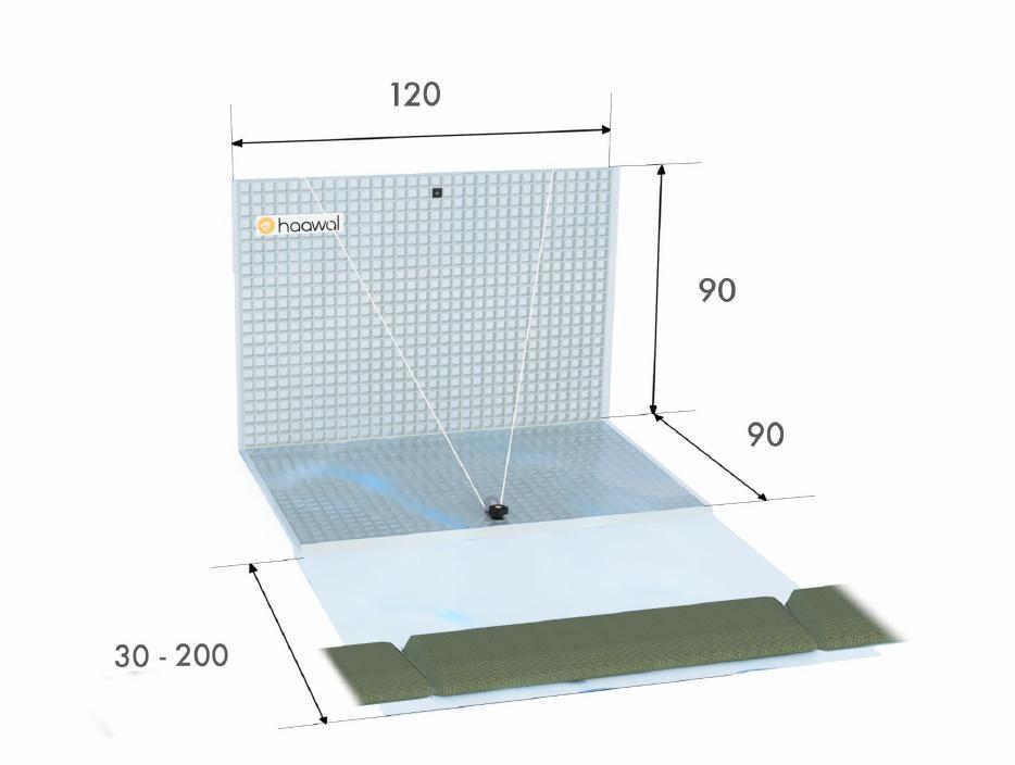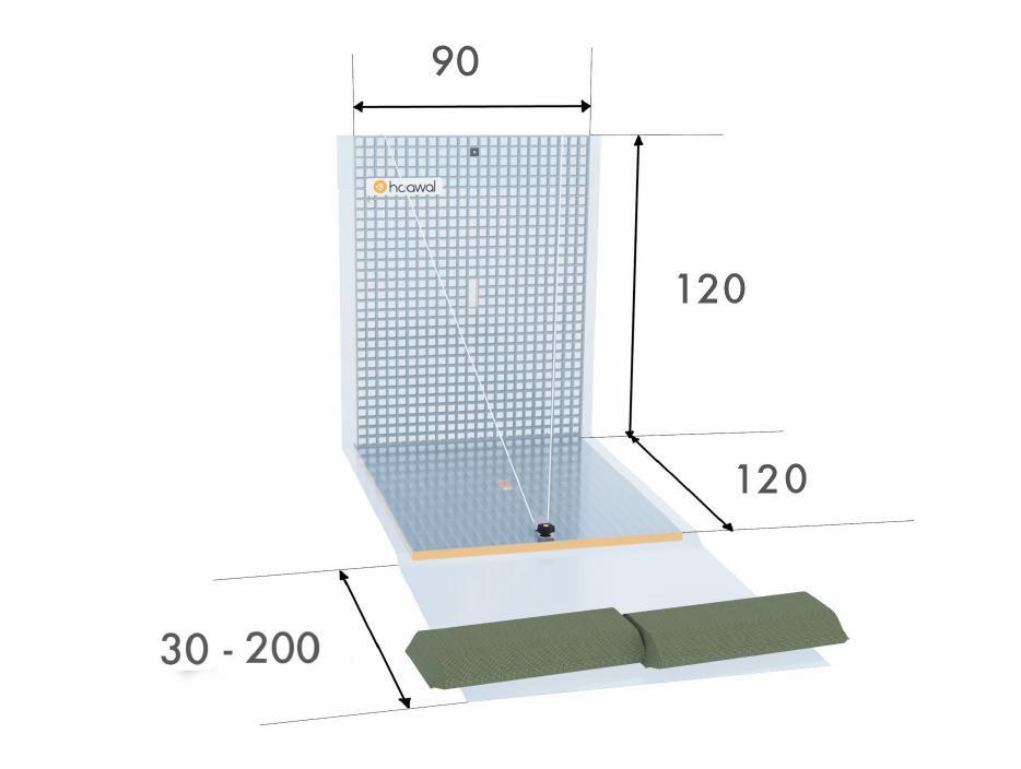 Når oversvømmelsesvandet trykker mod barrieren, er de hydrostatiske kræfter på bundpladen meget større end på væggen. Dette gør barrieren meget stabil.